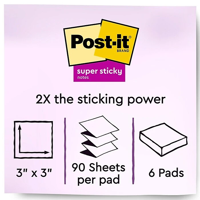 - Post-it® Super Sticky Notes have 2X the sticking power.