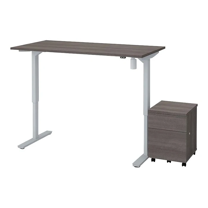 - Bundle includes: standing desk, mobile pedestal with two drawers