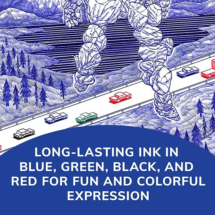 Keep your notes and data organized with BIC 4-Color Ballpoint Pens so you always have the perfect color ink. The versatile 1.0mm medium point creates clear, dark lines for tidy notes and helps you handle a variety of writing activities. Long-lasting ink gives these multicolor pens the endurance you can depend on for your projects. The wide barrel design is easy to grip, ensuring comfortable handling during writing sessions. With the lanyard hole and built-in clip, you can attach these to notebooks or wear them around your neck to keep these colorful pens within easy reach at all times. With a simple click, you can easily advance the desired color for these retractable ballpoint pens and unleash your creativity. They’re also a great choice if you need writing pens for journaling, doodling or organizing. As cost-effective refillable pens, each multicolor ballpoint pen can use ink refills for pens to lengthen the life of your pen and help reduce waste*. Black, blue, red and green inks in these colored ballpoint pens make them ideal pens for teachers. Enhance your productivity with BIC 4-Color Ballpoint Pens.