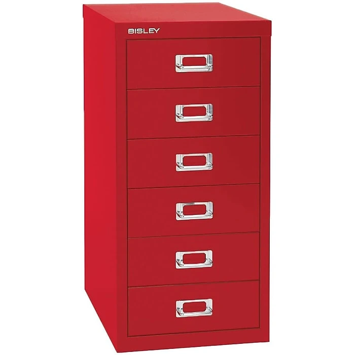 The Bisley Multidrawer units are perfect for under-your-desk storage of many variations, and will keep you organized in your home or office. At just under two feet tall, this multidrawer steel cabinet fits under your desk or counter. Six drawers provide generous storage space for paper, stationery, office supplies and crafts. The non-locking, removable drawers fit 8.5″ x 11″ letter size and A4 size paper.