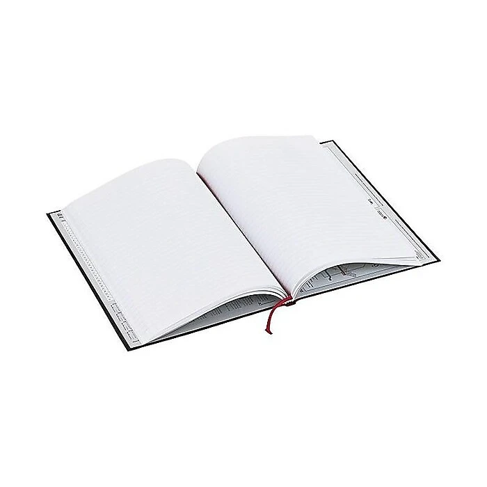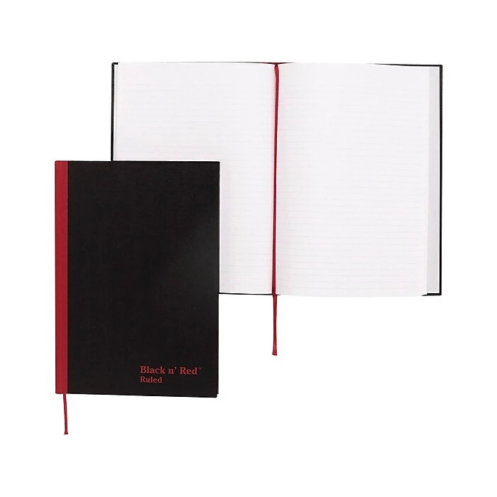 Brainstorm ideas, jot down lists and take other notes with this white legal-ruled notebook. The sturdy hardback covers of this notebook protect contents from rips and spills, while the sewn pages save you from having to keep track of loose sheets. This Black n’ Red legal-ruled notebook has 96 sheets of paper and features a red ribbon to bookmark important pages.