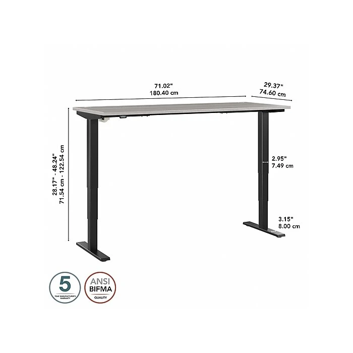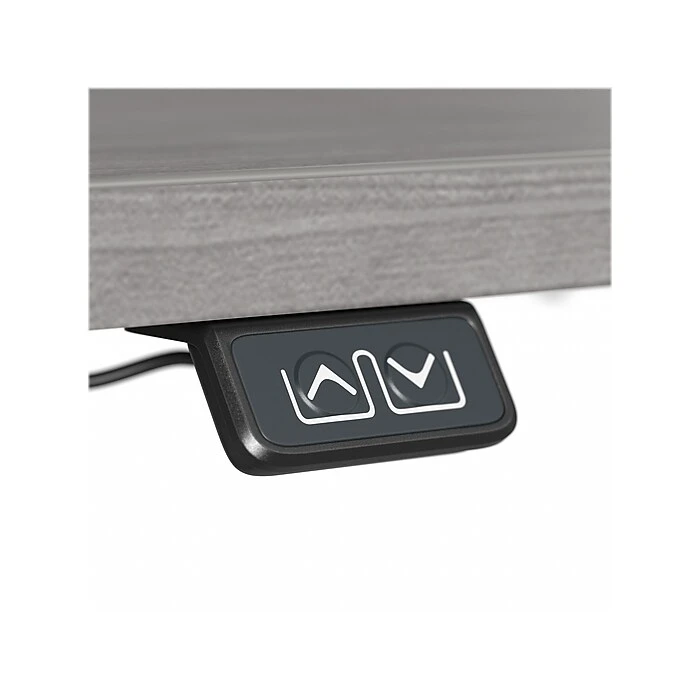 The Bush Business Furniture Move 40 height-adjustable standing desk is a perfect way to build an ergonomic workspace without the high-end price tag. Give your body and mind a break from sedentary work, and enjoy a healthier, more productive office with the push of a button. Three-stage units lift the desktop anywhere from 28″ to 48″ at a speed of 1.25″ per second, so you can change positions without missing a beat. The adjustable desk also features an anti-collision sensor that stops movement up or down if an object is detected. Available in several attractive finishes, the durable thermally fused laminate work surface resists scratches and stains, while a welded 16-gauge steel base allows the desktop to support up to 176 lbs. This sit-stand desk is tested to meet the ANSI/BIFMA quality standards for safety and performance and is backed by a 5-year manufacturer warranty.