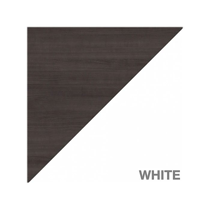 - Laminate over engineered wood in storm gray and white finish