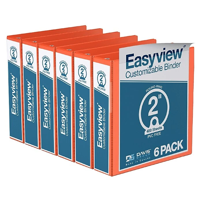 This Davis Group Easyview Premium customizable view binder is perfect for presentations, manuals, projects, reports, and more. The front cover, spine, and back cover feature an ink transfer resistant clear overlay, allowing you to customize each binder and make it your own. Complete with clear interior front and back cover pockets for loose document security. Back-mounted rings allow pages to lie flat. Made of PVC-free polypropylene material for enhanced durability. 100% recycled board with 85% post consumer waste.