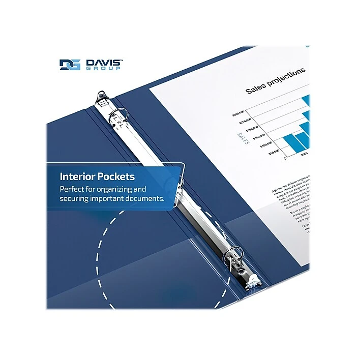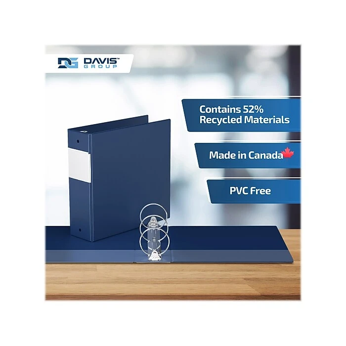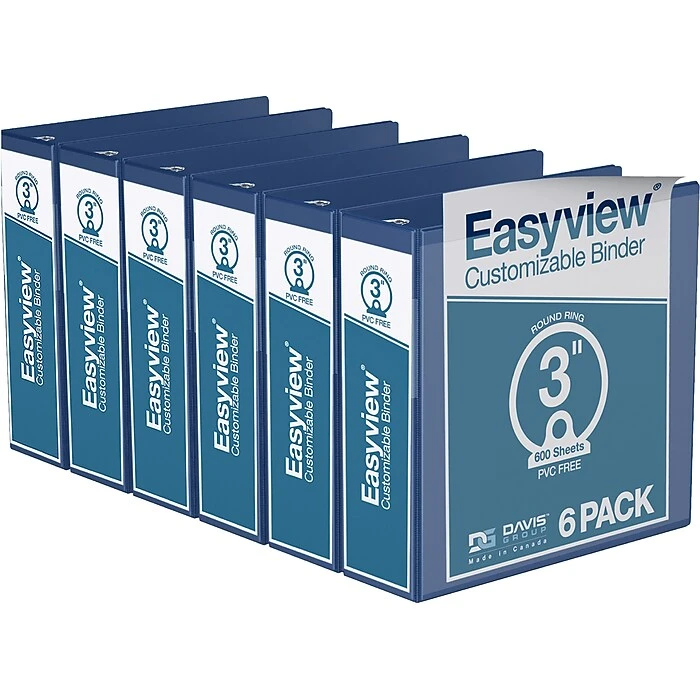 This Davis Group Easyview Premium customizable view binder is great for presentations, manuals, projects, reports, and more. The front cover, spine, and back cover feature an ink transfer resistant clear overlay, allowing you to customize the binder and make it your own. Complete with clear interior front and back cover pockets for loose document security. Back-mounted rings allow pages to lie flat. Made of PVC-free polypropylene for enhanced durability. 100% recycled board with 85% post consumer waste.