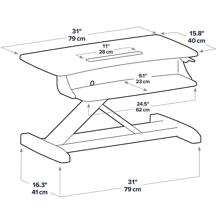 - Worksurface Dimensions: 31″ x 15.5″ (78,7 x 39,4 cm)