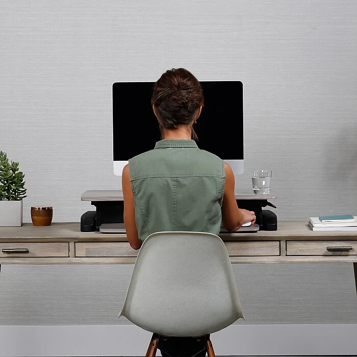 The WorkFit-Z Mini is equipped with the features you need most – easy adjustment between sitting and standing, space for your smart devices and a grey finish that complements your office decor.