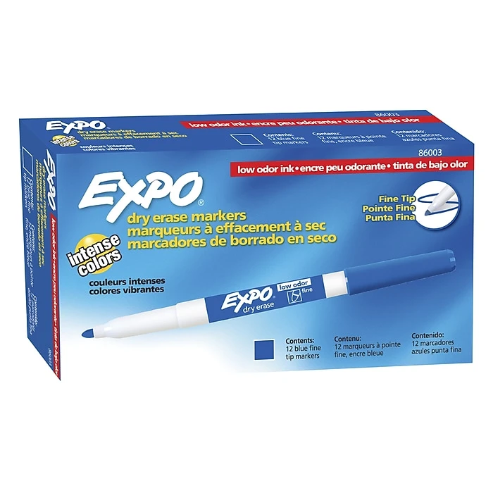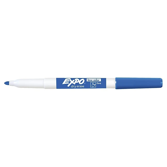 Create clear, easy-to-read lettering or detailed diagrams with these fine-point dry-erase markers. The specially designed ink is quick-drying and virtually odor-free. The bold blue color of these Expo dry-erase markers are easy to see from across the room, yet they erase easily from most non-porous surfaces.