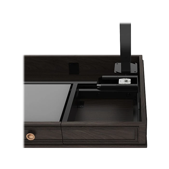 - Keep your desk clutter-free by storing items out of sight yet easy to access with integrated drawer