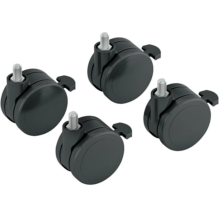 - Black locking casters replace existing standard glides that come standard on the height adjustable table bases.