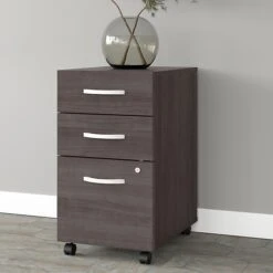 - Hard casters and an integrated handle on the back make the chair easy to move