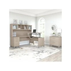 - Take your home office to new heights, and land in the perfect comfort zone with this adjustable desk and chair combination designed for ultimate productivity
