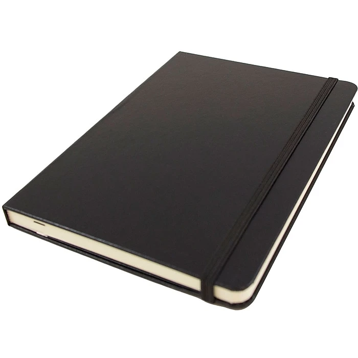 Jam® 5″ x 7″ Hardcover notebook in black color comes with elastic cover and features simple elastic band closure, handy pocket for protection. Notebook has smooth finish offers fashionable look.