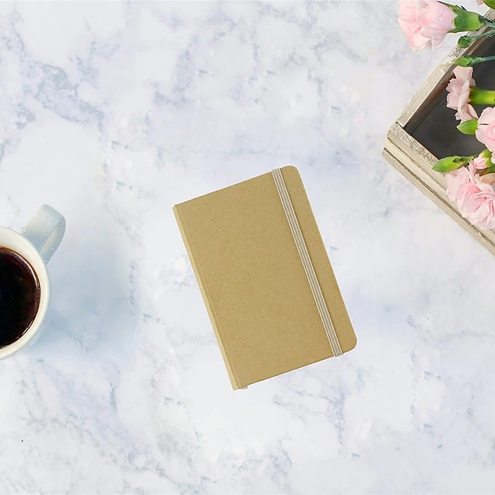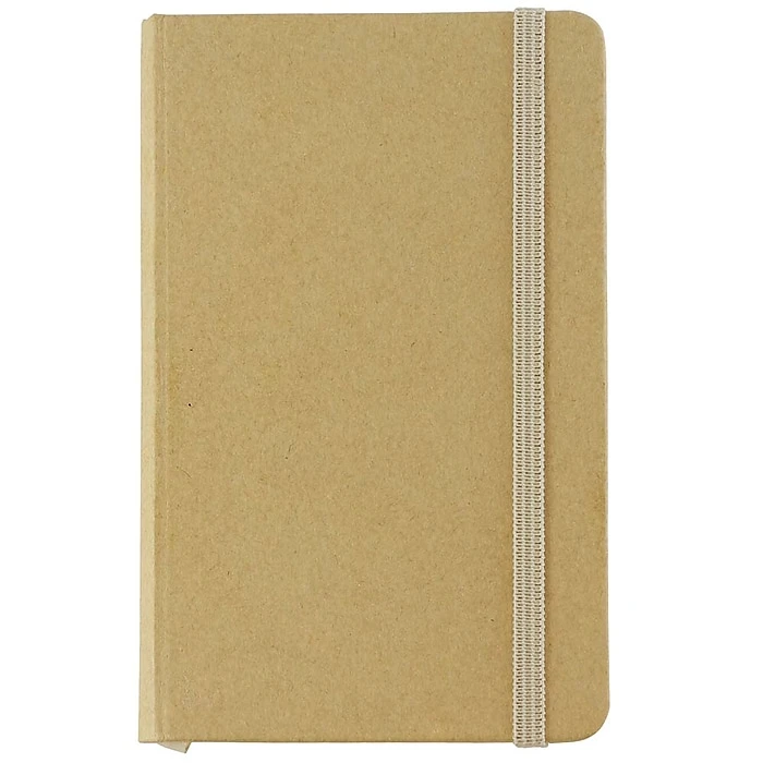 Jam® 3 3/4″ x 5 5/8″ Kraft hardcover notebook in natural color comes with elastic cover and features simple elastic band closure, handy pocket for protection. Notebook has smooth finish offers fashionable look.