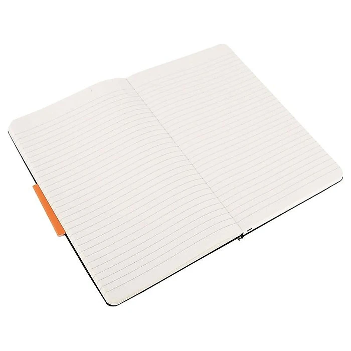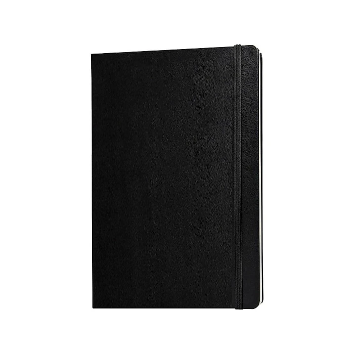 Draft ideas, write lists, or keep track of projects and deadlines with this black classic notebook. A stretchy elastic cord closure preserves privacy, and the sturdy hard cover protects the ivory-colored interior pages. The expandable inner pocket on this Moleskin classic notebook provides space for loose pages, photos, or small items, while a ribbon bookmark lets you find specific information fast.