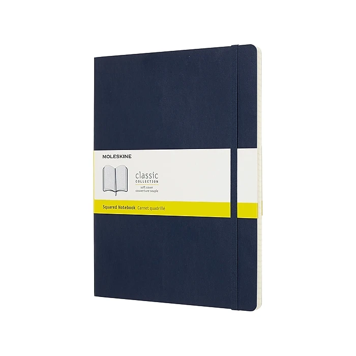Take this sapphire blue ruled-sheet notebook on the go for quick access to notes. The soft cover lets you easily store this notebook in a backpack or purse, while the large size provides ample room for stray ideas. This Moleskine Classic notebook features a soft cover and acid-free pages to prevent yellowing and crumbling over time for added longevity.