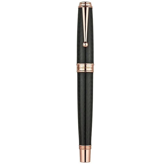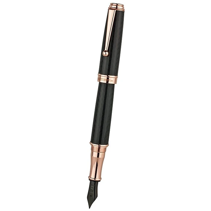 Monteverde® Invincia™ Deluxe fountain pen is durable and resistant to corrosion with special black titanium coating to broad nib. Pen with rose gold trim has lacquer finish and a dimension 5.4″ x 0.5″.