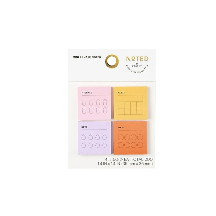 Meet Noted by Post-it®, a collection of delightfully designed desktop accessories to help inspire, wrangle and commemorate life’s most notable moments. These mini To-do Notes 1.4 in. x 1.4 in. are great to help you write down those tasks and get them done. In pink, lilac, orange and gold each pad has a pre-printed heading for to-dos including, “Hydrate”, “Habit”, “Move” and “Mood”.