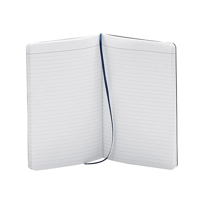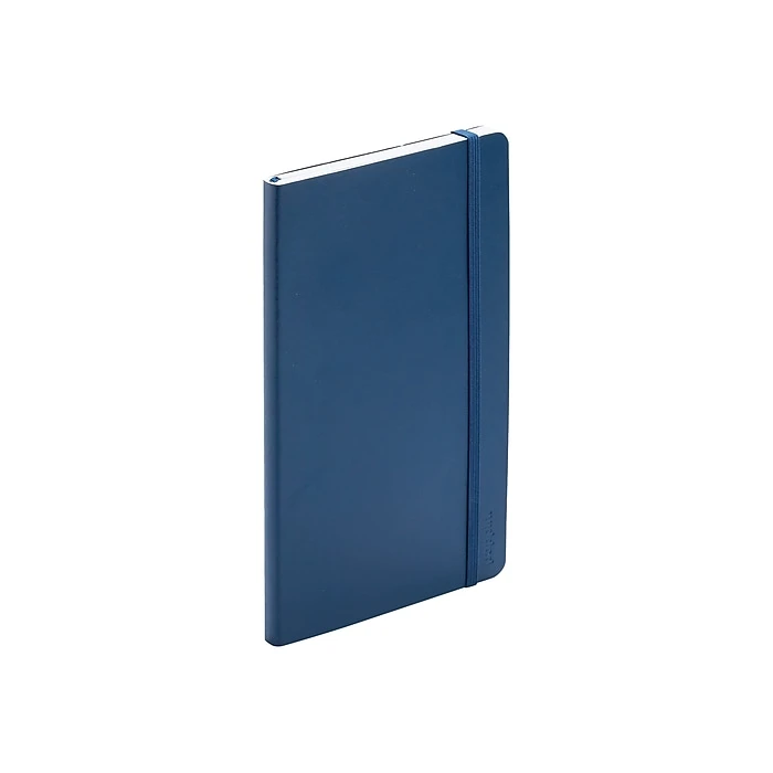 Enjoy the easy portability with this soft-cover notebook. With a portable and bendable design, this notebook is ideal for taking with you on the go and comes with an elastic closure, providing protection to pages and keeping your ribbon bookmark in place. This Poppin navy notebook has 192 lined white pages, providing plenty of room for sketches, charts and other projects.