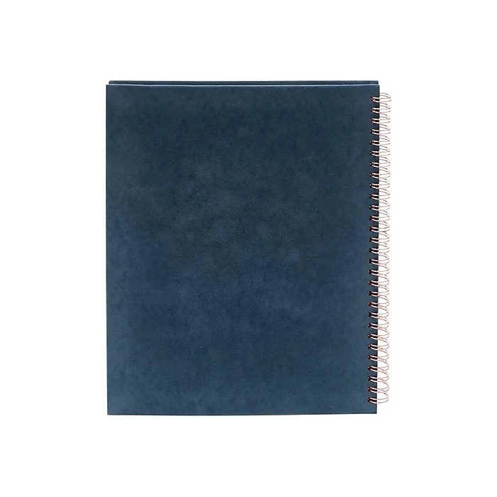 Write down important class details, reminders, and other information in this large notebook. The copper spiral binding adds a stylish flair and allows for easy page turning, while the perforated edges make it simple to remove used sheets. This Poppin Velvet spiral notebook is large, offering plenty of room for writing and has a hard cover, providing increased durability and protection to contents.