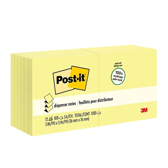 - 3 in x 3 in, Dispenser Notes, Canary Yellow