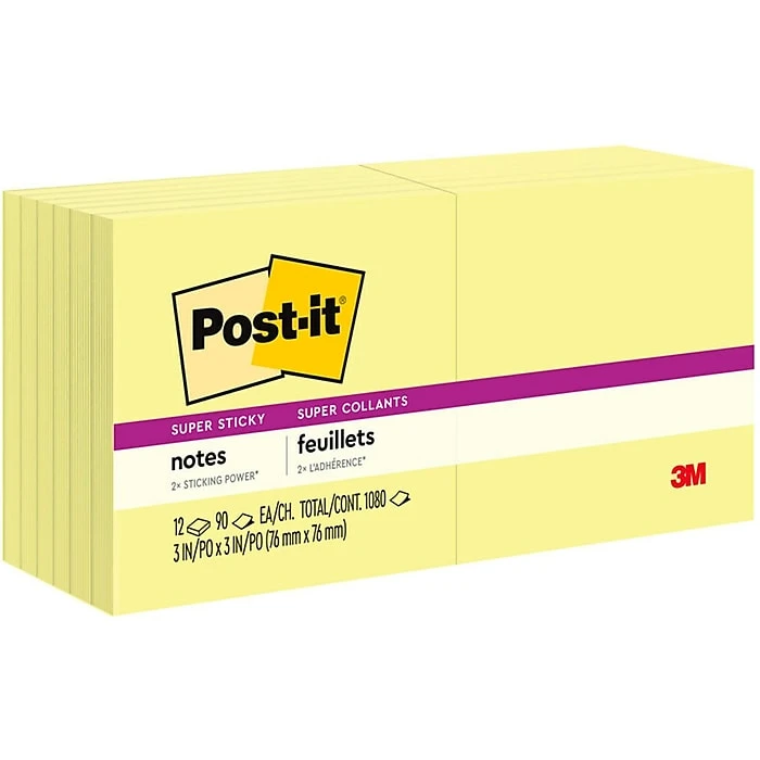 - Post-it® Super Sticky Notes stick and re-stick so your thoughts get noticed.