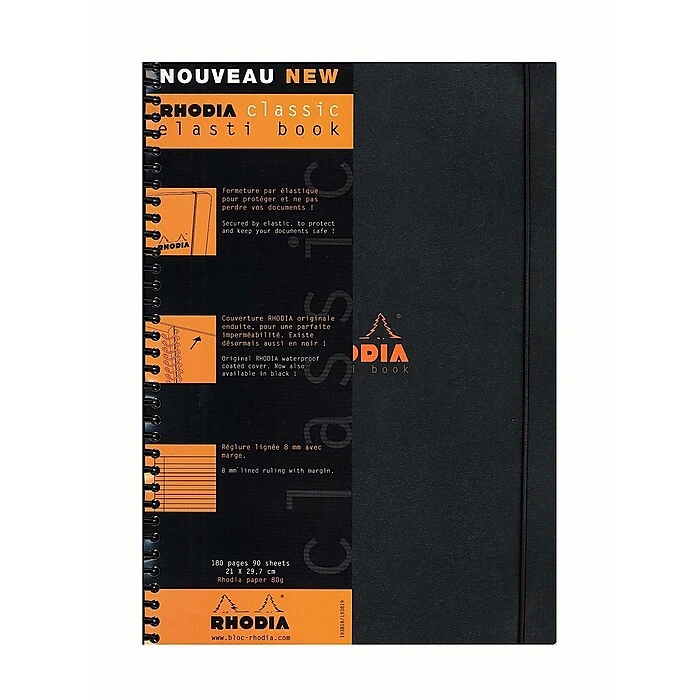 Elasti-Books feature the same quality materials and distinctive style that define the Rhodia tradition. Each Elasti-Pad is spiral bound and has an elastic closure to keep its contents secure. Elasti-Books contain 90 sheets of premium ruled paper.