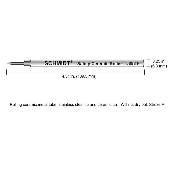 Schmidt 5888 Fits many Rollerball pens, Acme®, Aldo Domani®, Aurora®, Bexly®, Colibri®, Conklin ®, Delta ®, Diplomat ®, Faber Castell ®, Hauser®, Montegrappa®, Monteverde ®, Omas ®, Parker ®, Pelikan ®, Retro 51 ®, Schmidt®, Schneider®, Sensa®, Stipula®, Visconti®, Yafa ®