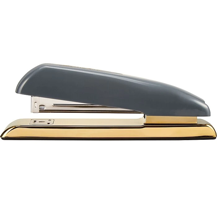 - Stylish desktop stapler has a metallic gold base for a chic, professional look