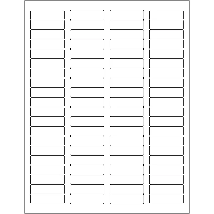 1 3/4″ x 1/2″ White Rectangle Laser Labels. Use to create your own product or mailing labels. Labels work with both Laser and ink jet printers. Permanent adhesive. Labels stick to a variety of smooth surfaces including paper, corrugated, plastic, wood, glass and metal.