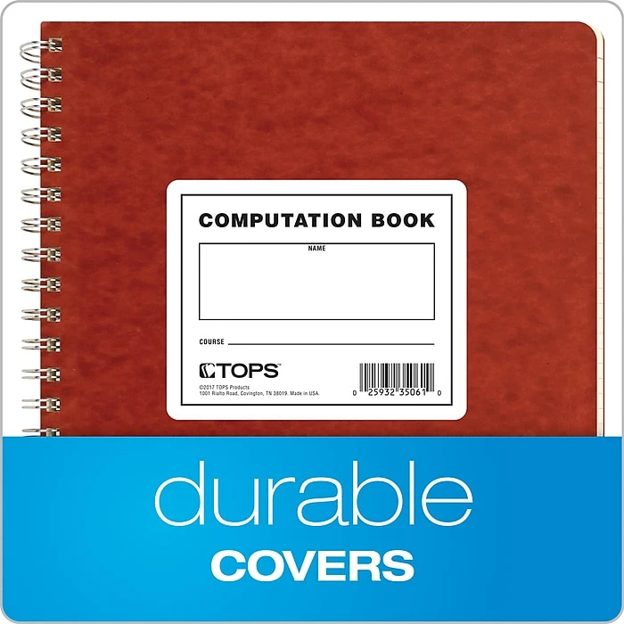 Bring a professional look to research, mathematical or design work with this computation notebook. The quad-rule layout is ideal for creating charts and graphs, while the double wire binding allows for a smooth, catch-free page turns. Numbered pages make it easy to reference previously recorded notes and results. Featuring a blank form on the front, this TOPS computation notebook lets you add a subject label or dates.