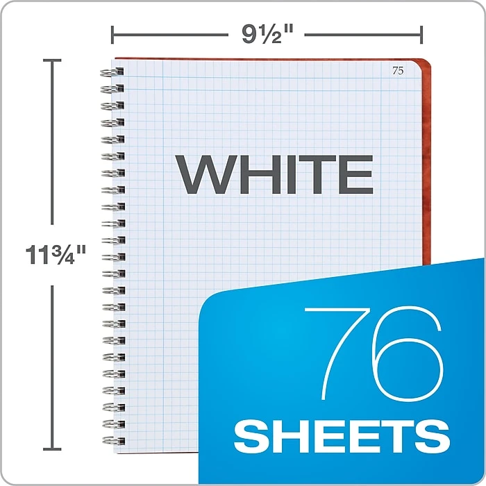 - This 9.5″H x 11.75″L notebook has 76 sheets