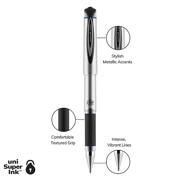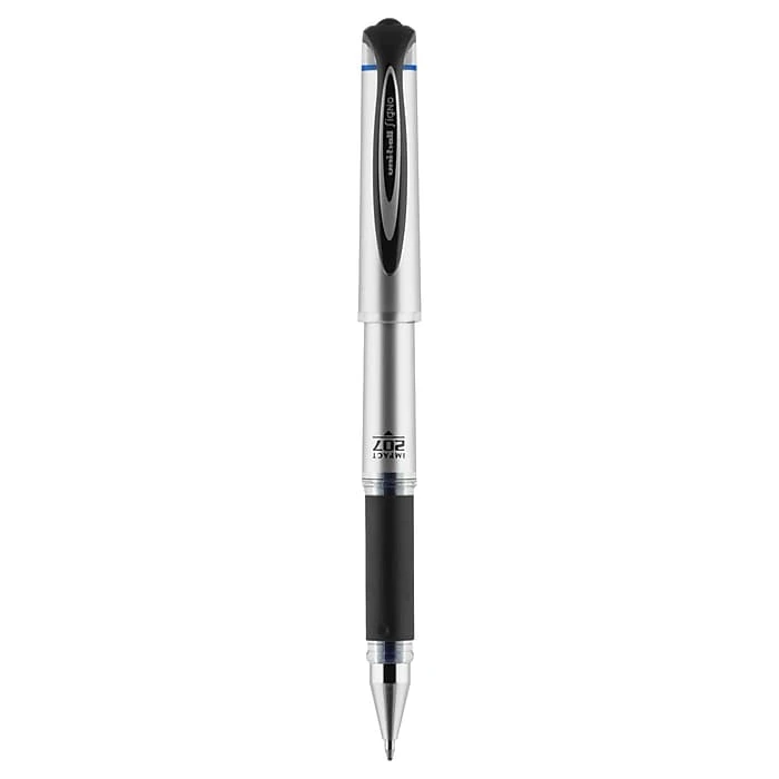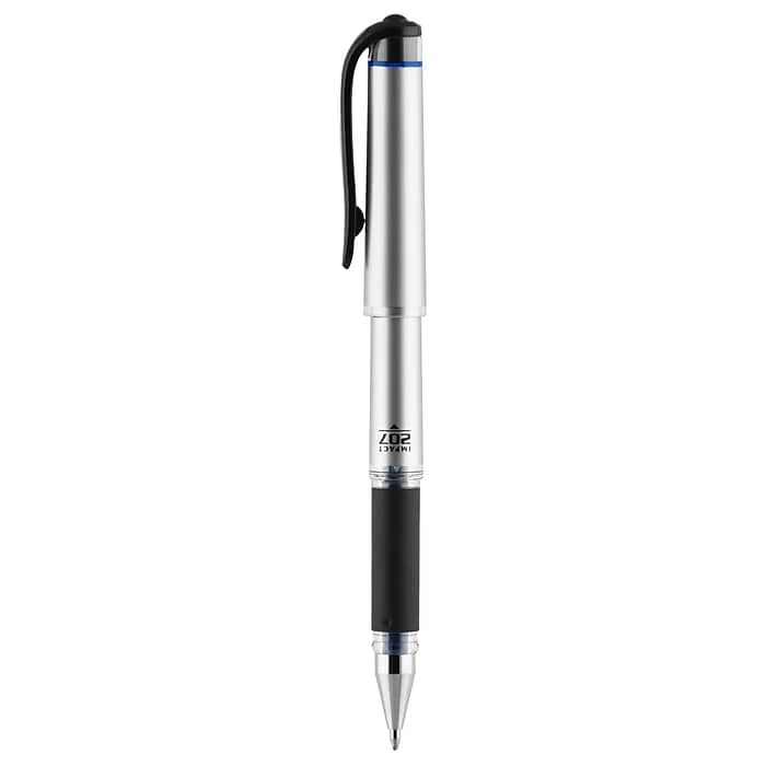 Keep these uni-ball Impact gel pens close at hand for signing documents or grading papers. The multipack of pens come with caps to prevent unwanted marks when not in use, and the easy-to-hold shape, plastic clip and stylish barrel work together to provide a high-quality writing experience. These uni-ball Impact gel pens have a bold point so their lines are smooth and unbroken.