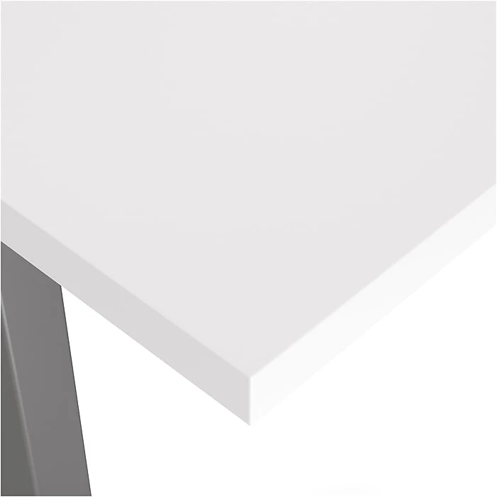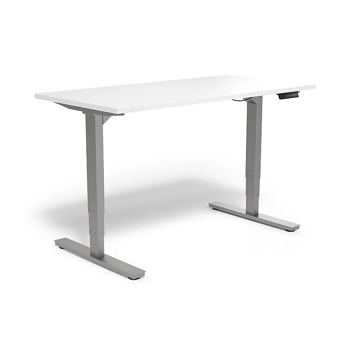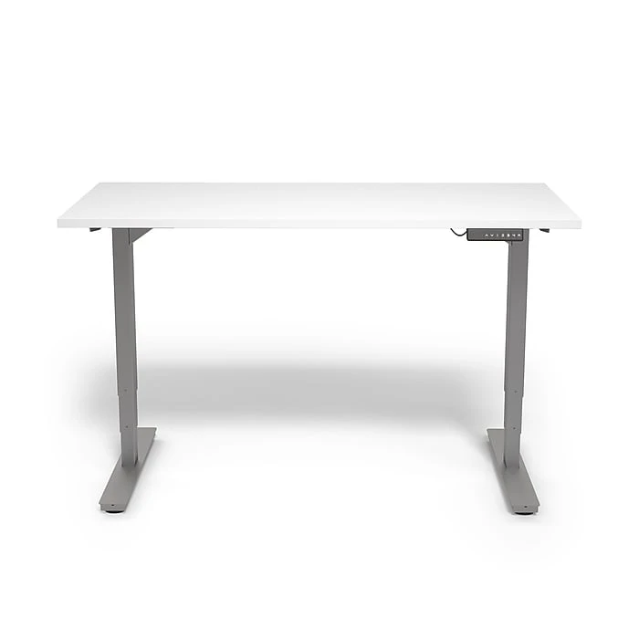 - Electric sit-stand adjustable desk; top laminate finished in white