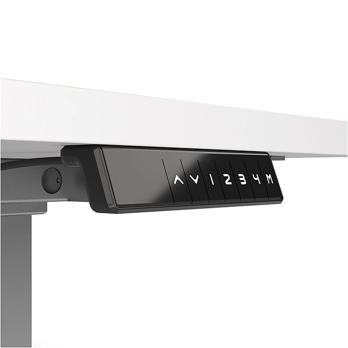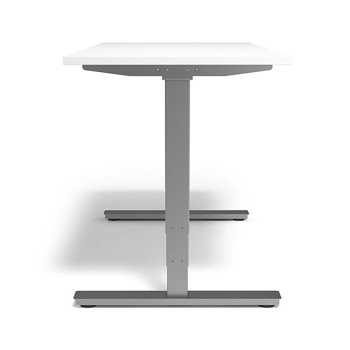Complete office tasks comfortably with this white adjustable desk. The rectangle tabletop provides accommodation for your laptop and writing materials, while the included buttons let you adjust the height. Featuring a white design, this sit-stand desk brings a clean look to your office space. The control box and two motors allow for effortless operation, and the included side brackets easily fit the predrilled holes for added support. This Essentials sit-stand electric height-adjustable desk is easy to assemble and has a metal cable tray for a neat space.